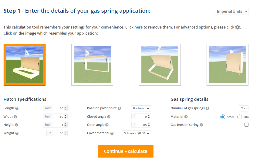 But, it can be a lot easier. With our calculation tool you only need to fill in a few details of your gas spring application. That will be the following information:
