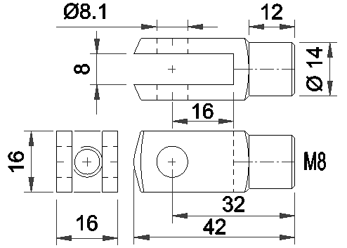 Replacement gas spring for the Bansbach A5A5-42-250-611--0XX 80-1250 Newton. The fork has a hole diameter of 8.1mm. Brand: HAHN, a Stabilus company.