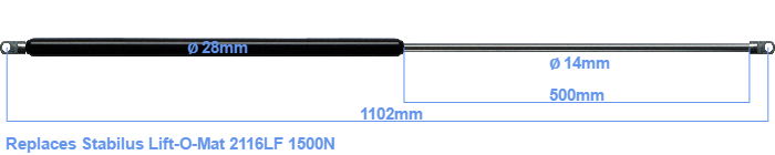 Replacement for Stabilus Lift-O-Mat 2116LF 1500N